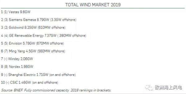 受惨不忍睹的2019年德国风电市场影响,去年还在这一榜单当中的Enercon今年已悄然无踪影。国电联合动力也跌出了前十。